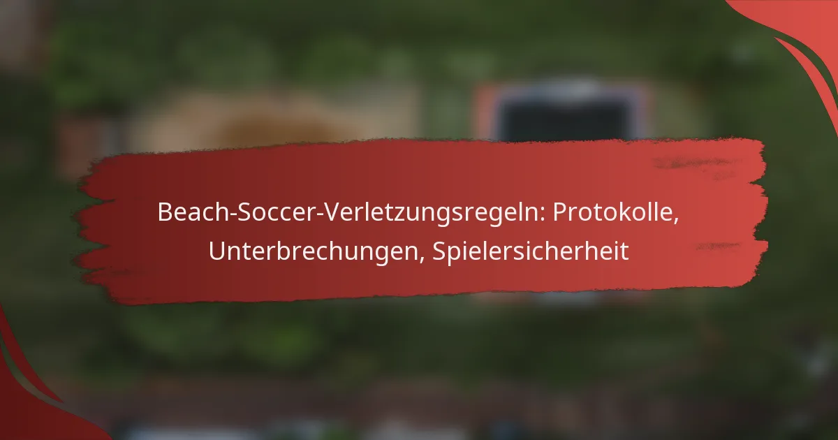 Im Beachsoccer sind Verletzungsprotokolle entscheidend für die Gewährleistung der Sicherheit der Spieler und das effektive Management von Verletzungen während der Spiele. Diese Richtlinien umfassen Bewertungsverfahren, medizinische Interventionen und Kriterien für die Rückkehr ins Spiel, die alle darauf abzielen, eine sichere Spielumgebung aufrechtzuerhalten. Darüber hinaus werden Unterbrechungen aufgrund von Verletzungen von den Schiedsrichtern sorgfältig verwaltet, um die Integrität des Spiels zu wahren und das Wohl der Spieler zu priorisieren.